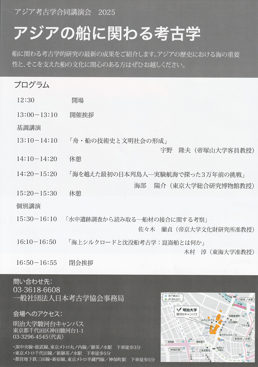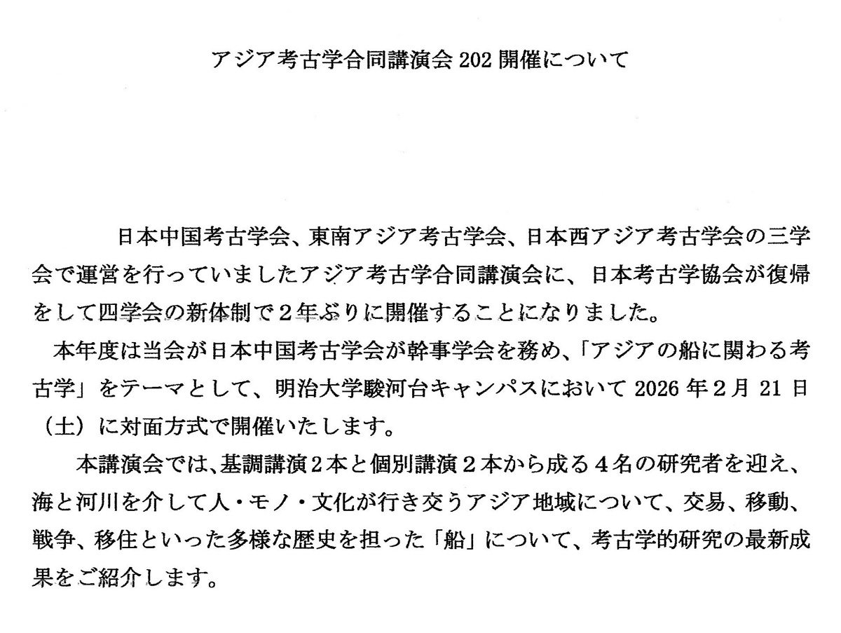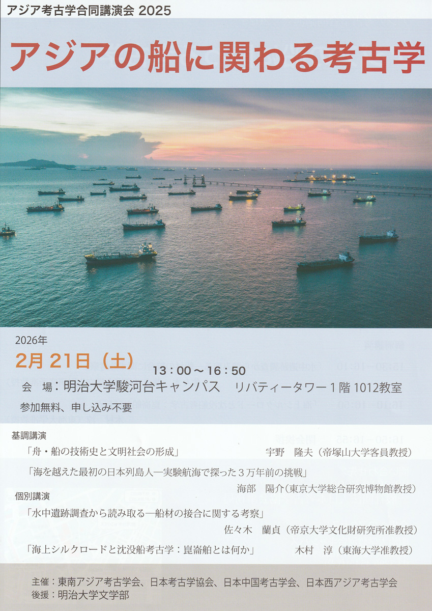 - 2025年度アジア考古学合同講演会「アジアの船に関わる考古学」2026年2月21日に開催
